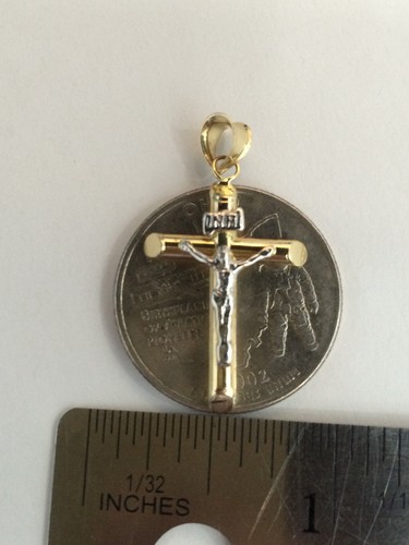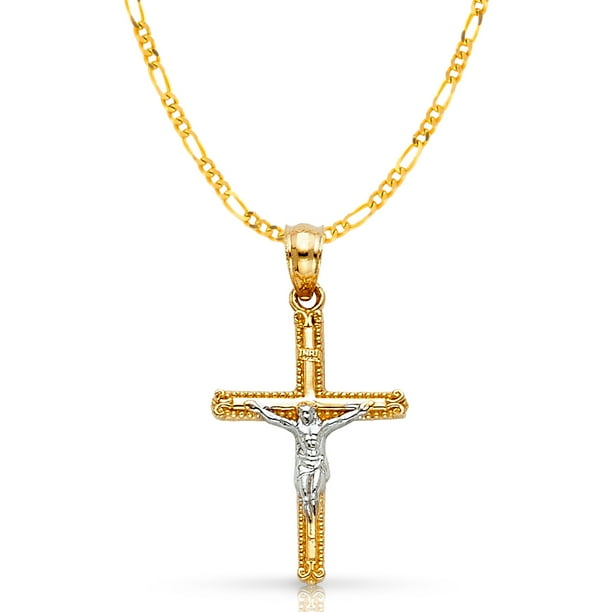 14k real solid two tone gold jesus crucifix cross religious charm small pendant for necklace or chain, religious pendant, for women/men. Made of 14k yellow gold, this piece features a weight of 0.92 grams. 4.5 out of 5 stars. Jesus portrait hand made large oval necklace pendant 14k yellow gold. With intricate designs and diamond setting, any.